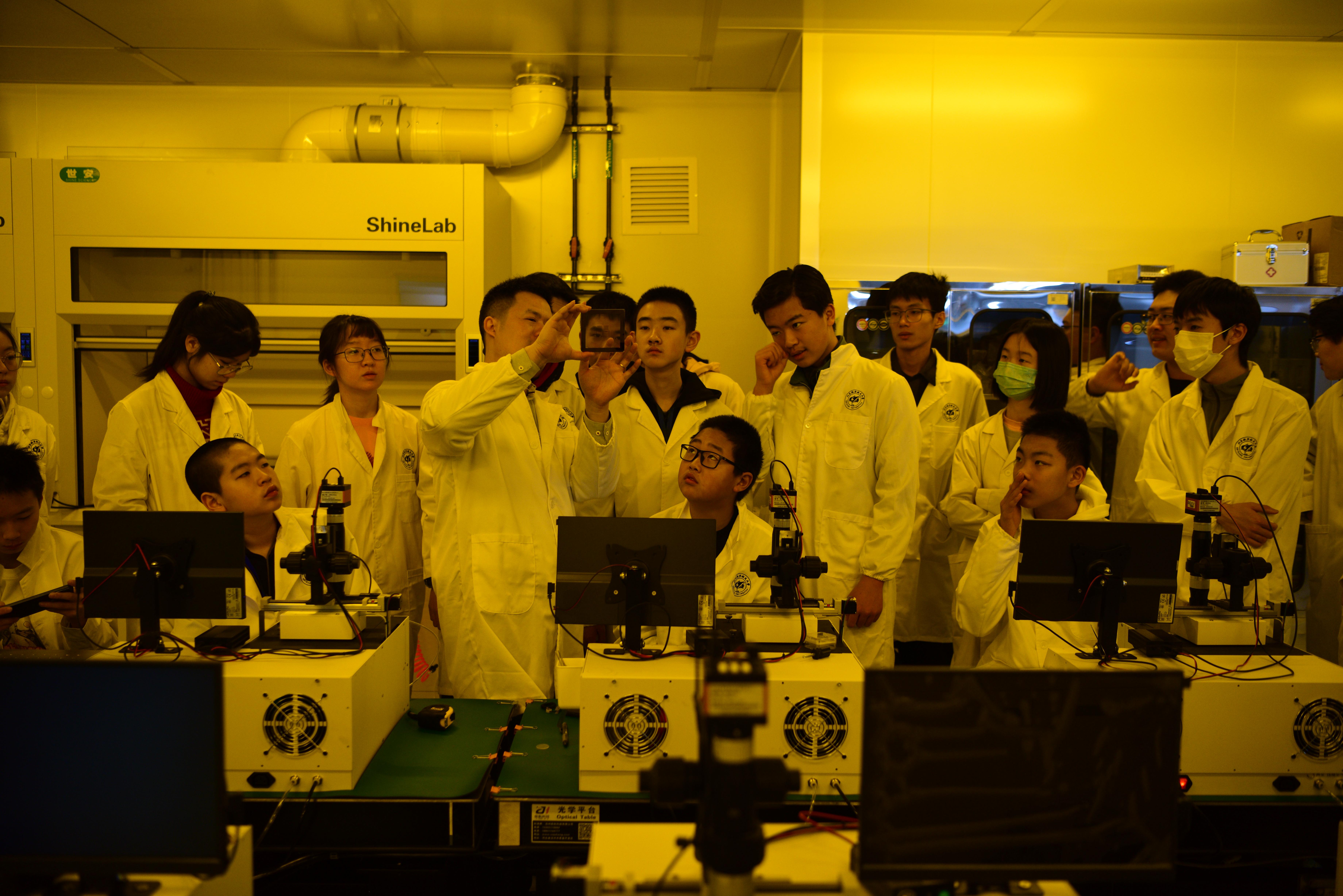 本次活动中,集成电路学院更是打破常规,为营员开放大学实验室。由学院实验室老师带队,手把手教学科研教学级光刻机的原理及使用,并让每位营员操作光刻机,完成磁传感芯片的加工,每人收获一枚自己亲手制作的芯片。此外,营员们还来到了集成电路虚实结合实践基地,该基地包含一套12寸晶圆厂完整产线的虚拟仿真模型,营员们通过vr眼镜体验到最先进的晶圆厂里的尖端半导体设备,并可以通过互动对每台设备进行实践操作。该基地还包括一套尖端集成电路系列装备的拆解仿真模型,包括光刻机、刻蚀机、镀膜机、离子注入机等产业级设备,学生可以通过互动对尖端设备进行拆解,了解设备内部构造和工作原理。