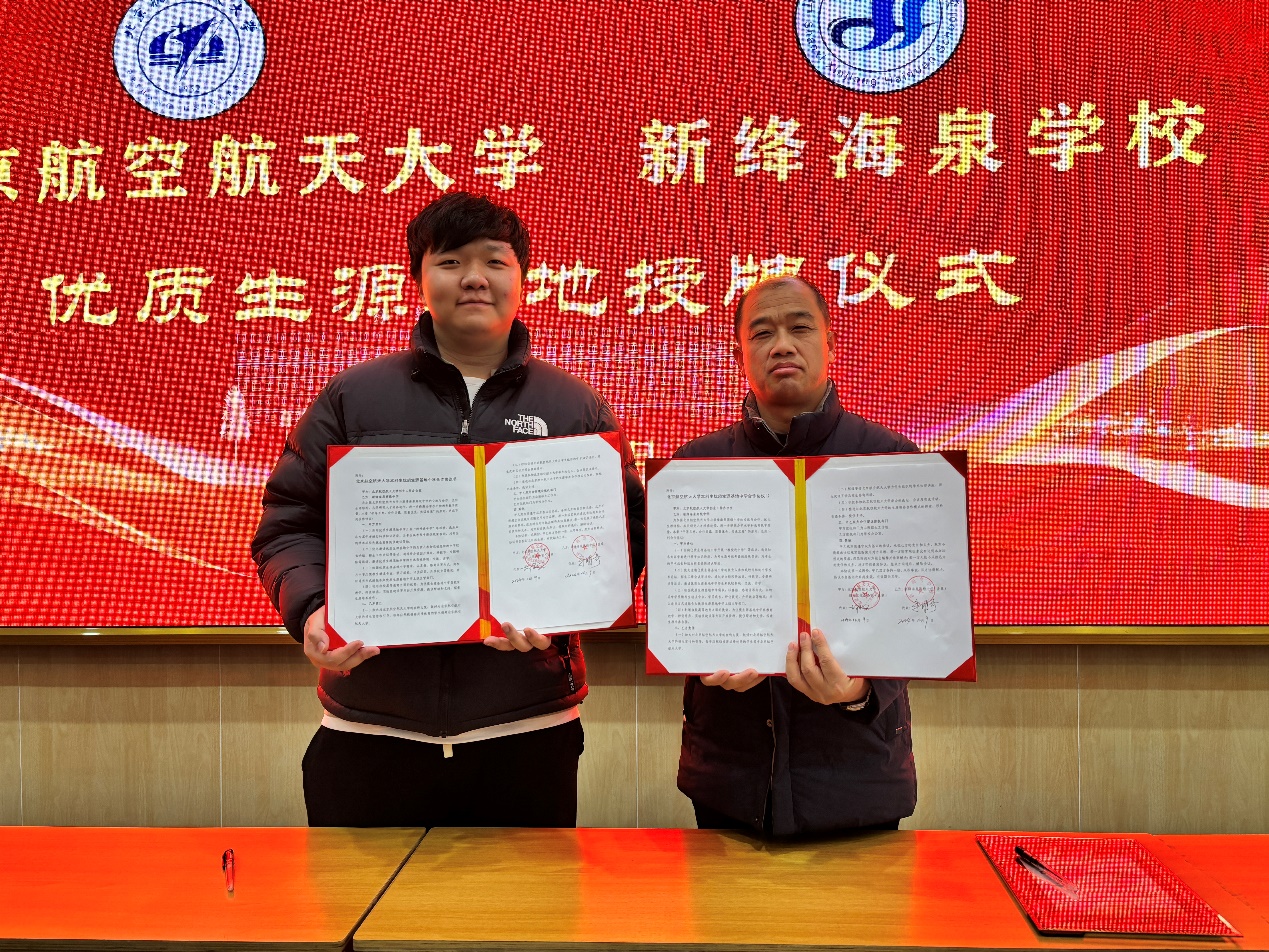 在全校师生的见证下,双方现场签署了“优质生源基地”合作协议,举行了“优质生源地基地校”授牌仪式。