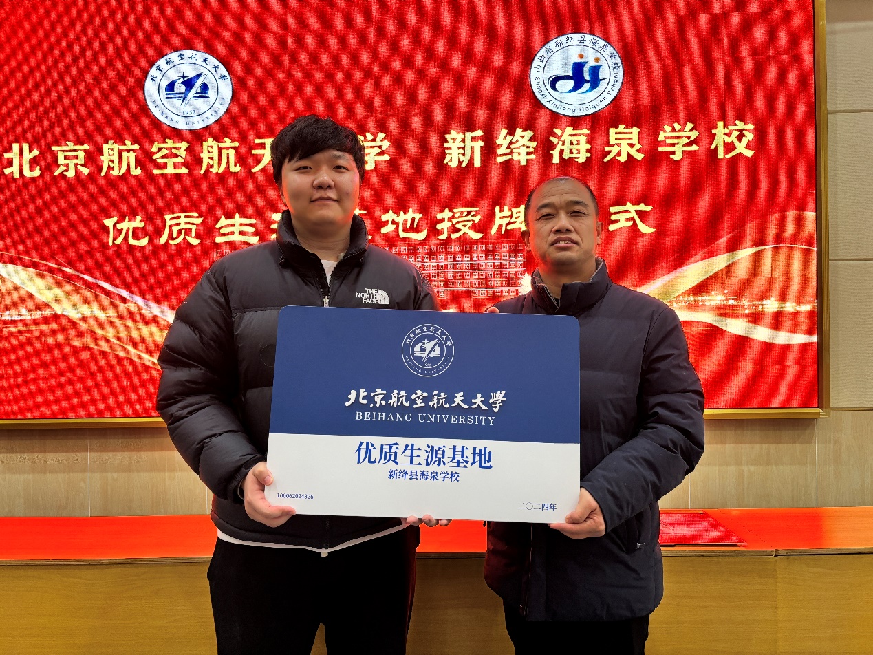 在康杰中学,集成电路学院专职辅导员、山西招生组成员胡晏铭与副校长李梅菊、张阳朋老师深入座谈,着重阐述了北航的学科设置、专业特色以及历年的招生政策等相关信息,全面解答了关于北航招生的各类问题。座谈结束后,双方共同进行了“优质生源地基地”授牌签约仪式。