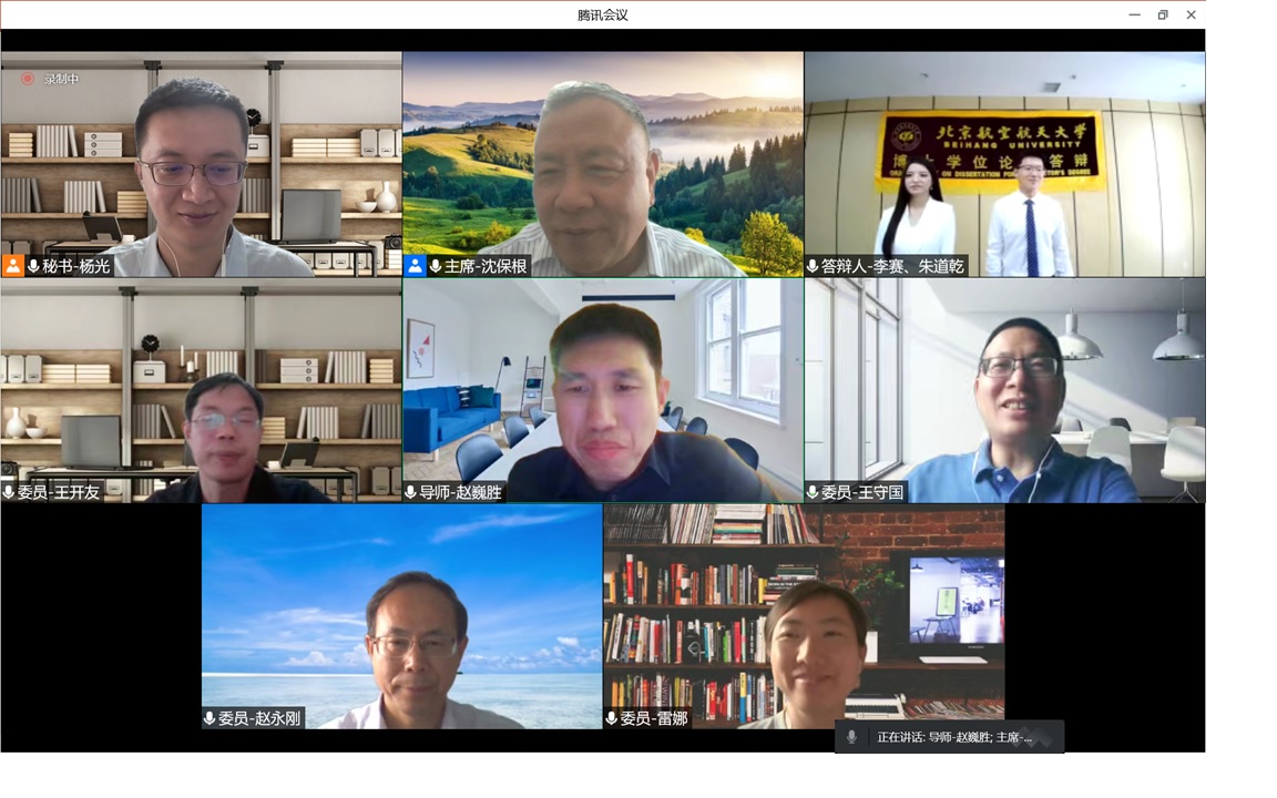 尽管是线上答辩,但程序与线下答辩相同。李赛、朱道乾同学依次分别介绍了其博士阶段的研究工作,对论文的创新性成果进行了总结,并逐一回答了答辩委员会专家提出的问题。随后,答辩委员会成员进入分组讨论区,在线讨论形成了答辩决议,并通过群投票以无记名方式进行表决。最终,答辩委员会全票通过李赛、朱道乾同学的学位论文答辩,建议授予其工学博士学位。学位论文答辩过程严谨规范,秩序井然。