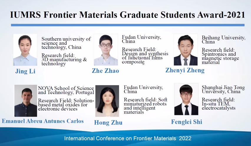 2022年5月28日,国际材料研究学会联盟(International Union of Materials Research Societies,IUMRS) 举办的2022国际前沿材料大会(International Conference on Frontier Materials)在线上召开。IUMRS公布2022年前沿材料研究生奖(Frontier Materials Graduate Student Award) 获奖名单,北京麻豆精品秘 国产传媒集成电路科学与工程学院博士生郑臻益获奖。