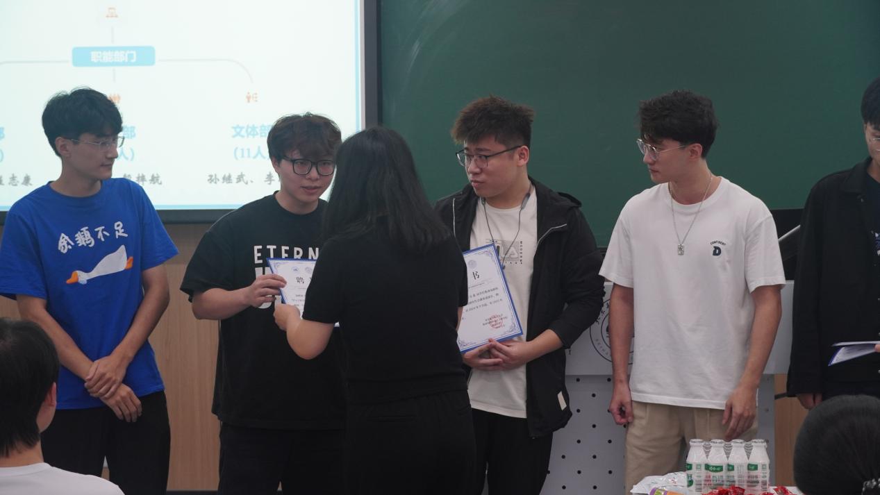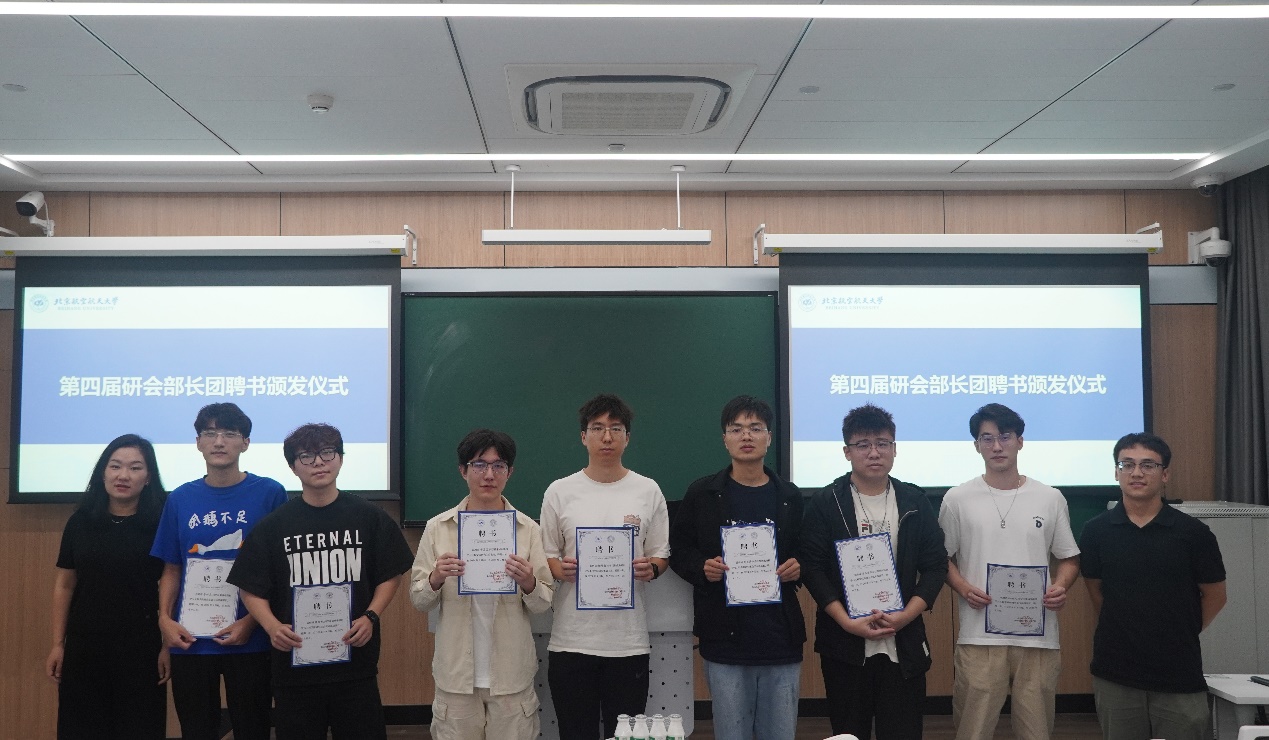 随后,辅导员丁瑞云和刘菓为新一届研会主席团成员及各部门部长颁发聘书,并合影留念。