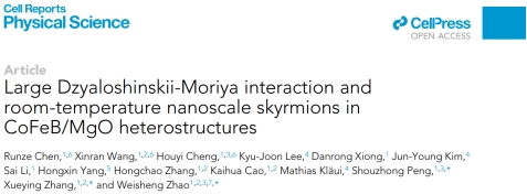 近日,北京麻豆精品秘 国产传媒集成电路科学与工程学院赵巍胜教授团队在CellReports Physical Science期刊在线发表了题为“Large Dzyaloshinskii-Moriya interaction and room-temperature nanoscale skyrmions in CoFeB/MgO heterostructures”的学术论文。该工作报道了CoFeB/MgO异质结中大Dzyaloshinskii-Moriya相互作用(DMI)以及室温下亚百纳米斯格明子的存在,为斯格明子材料体系的选择以及新型微纳电子器件的设计提供了新思路。