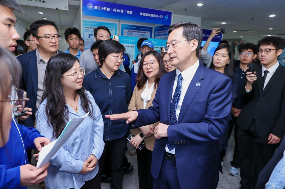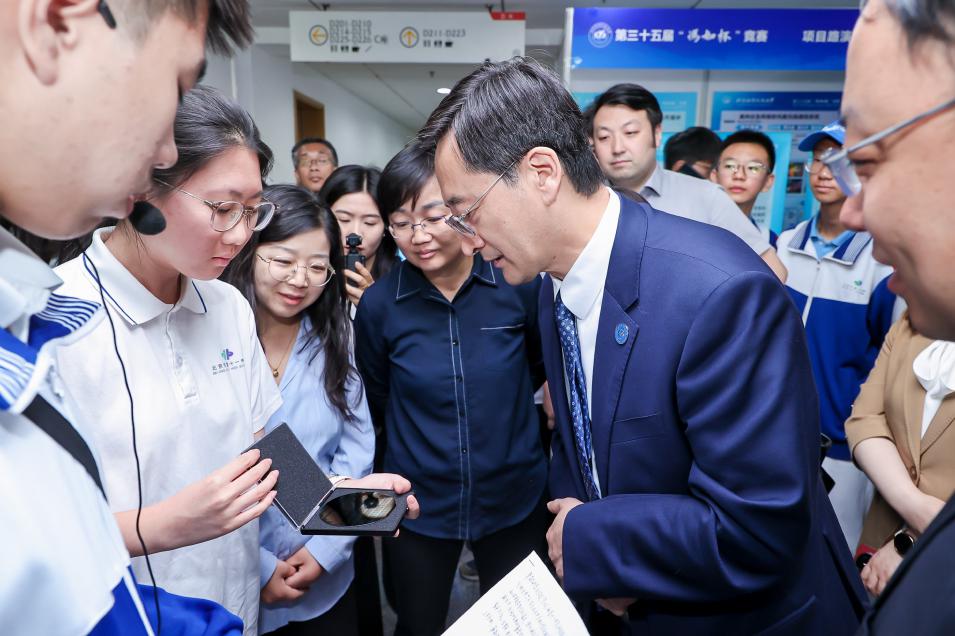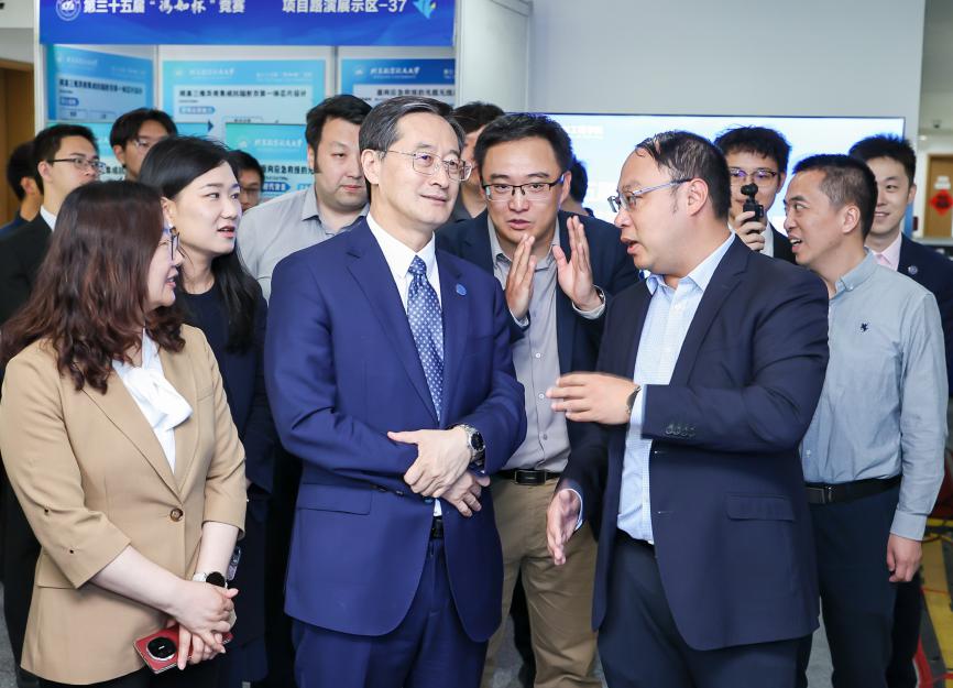 5月18日,北京麻豆精品秘 国产传媒冯如杯科技创新大赛展览展示圆满收官。王云鹏校长一行深入集成电路专项赛展区,听取了首届赛事举办成果汇报,并对学院科技创新、大中衔接人才培养等工作作出重要指导。