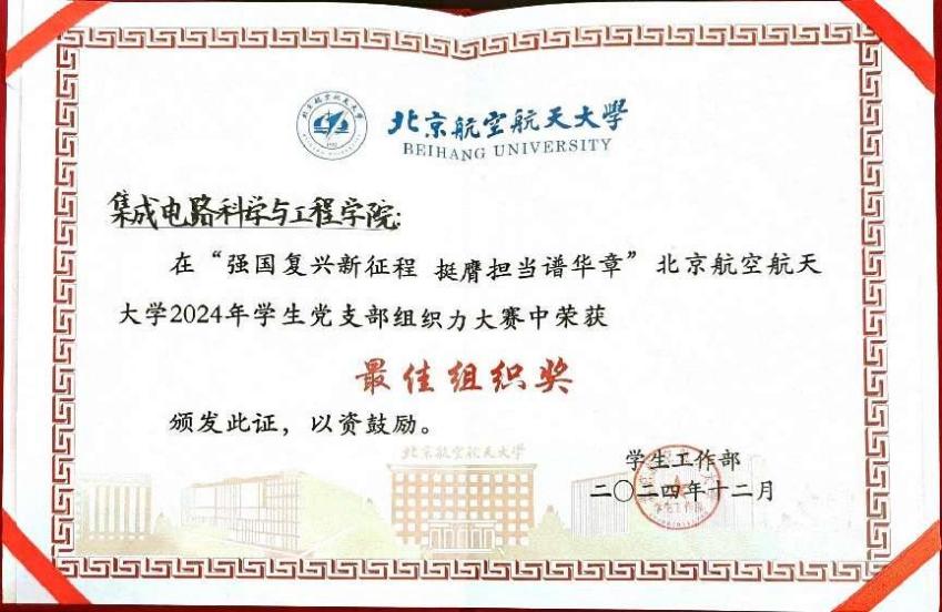 喜报|集成电路学院本科生党支部荣获北航2024年学生党支部组织力大赛三等奖