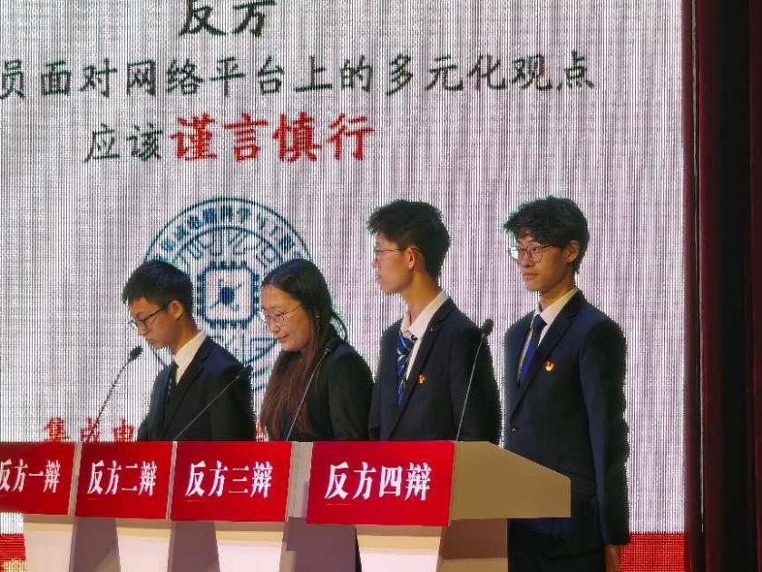 经过层层比拼,最终10支队伍进入复赛阶段,复赛由知识竞答、主题辩论以及理论宣讲三赛程组成。知识竞答环节杨雯雁、张君豪同志以扎实的党史知识储备快速应对难题,展现出身为党员对理论知识的深刻理解。在辩论环节,我方刘星宇、杨雯雁、尹鑫宇、刘继隆同志坚持“学生党员面对网络平台上的多元化观点,应该谨言慎行”的立场不动摇,逻辑思维缜密,体现出高超的随机应变能力。在最后的理论宣讲,参赛选手用饱满的热情、生动的话语、鲜活的事例,讲授出了一场有情怀、有温度、有力量的演讲,展示了新时代北航集成电路人“矢志不渝 敢为人先 致真唯实 芯片报国”的使命担当。