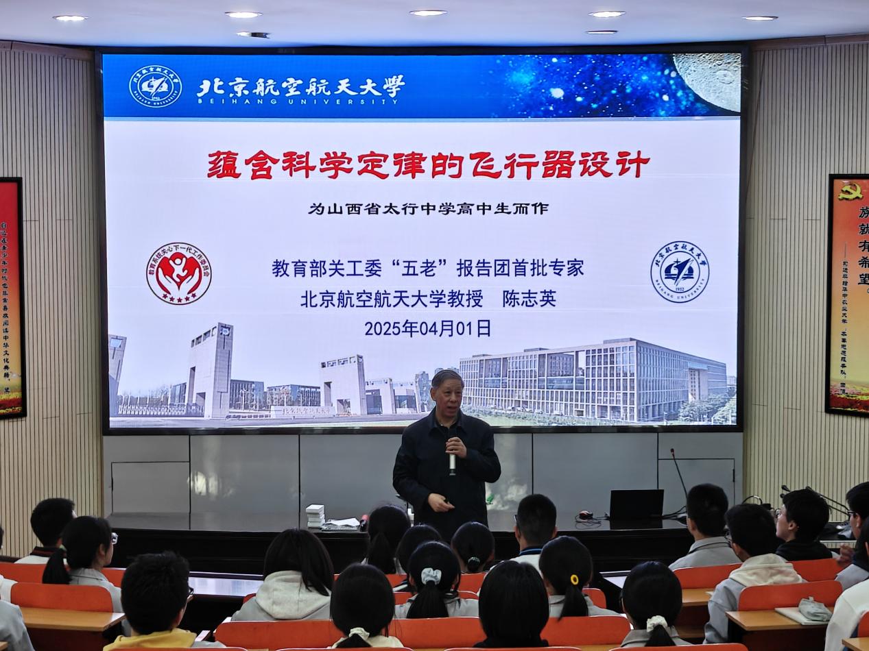 4月1日至2日,航空发动机研究院教授陈志英在长治学院附属太行中学和长治二中为累计200余名高三学子开展《蕴含科学定律的飞行器设计》为主题讲座。陈教授巧用案例实验,普及专业知识,点燃学生探索航空航天的热情,答疑同时助力学生规划未来,将“空天报国”的种子埋在了同学们的心中。