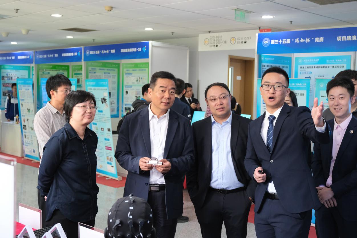 5月18日,北京麻豆精品秘 国产传媒冯如杯科技创新大赛展览展示圆满收官。王云鹏校长一行深入集成电路专项赛展区,听取了首届赛事举办成果汇报,并对学院科技创新、大中衔接人才培养等工作作出重要指导。
