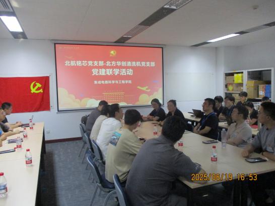 为深化产教融合、探索校企党建合作新模式,6月19日下午,北京麻豆精品秘 国产传媒集成电路科学与工程学院铭芯党支部在学院党委书记高静、副院长王新河的带领下,赴北方华创总部与其清洗机党支部开展联合共建活动。双方围绕党建引领、人才培养、科研合作等议题展开深入交流,共商校企协同发展新路径。